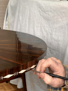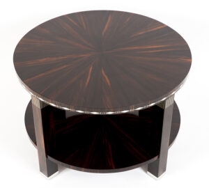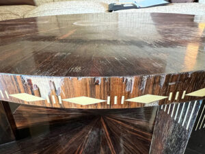Fondé en 1990, l’Atelier Marcu restaure avec passion et exigence le mobilier haut de gamme du XVIIe au XXe siècle. Maîtres dans l’art de la restauration de meubles anciens et d’objets d’époque, l’atelier de Benoit Marcu redonne vie à votre patrimoine d’excellence. L’atelier d’ébénisterie perpétue les méthodes traditionnelles pour sublimer l’authenticité de chaque pièce, de la marqueterie aux finitions d’origine. Voici en image une table Art Déco estampillée Ruhlmann restaurée :