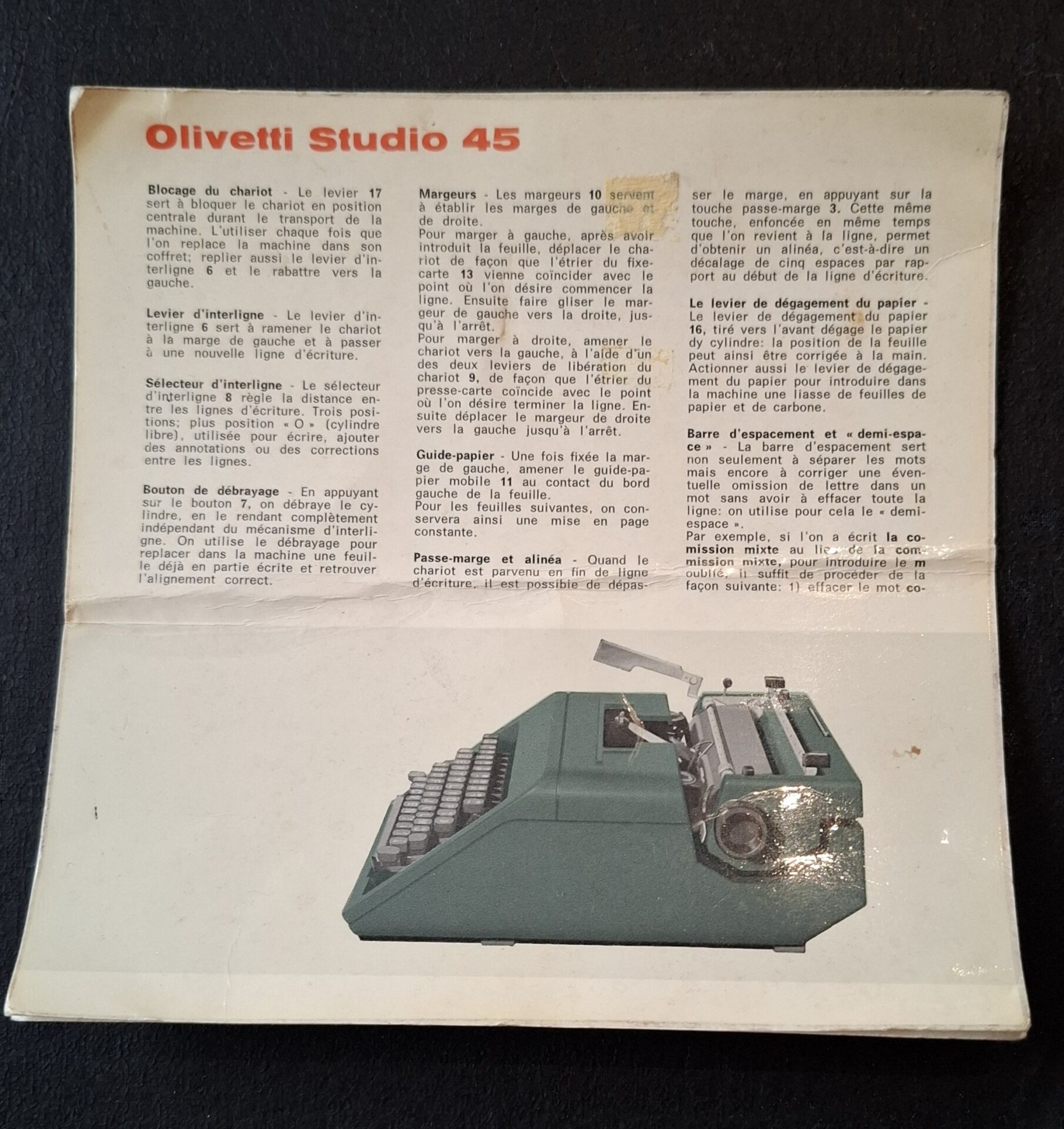- Mécanique exceptionnelle : Le mécanisme de frappe, le chariot (retour de ligne), les leviers et les touches fonctionnent parfaitement (voir photo de l’essai de frappe).