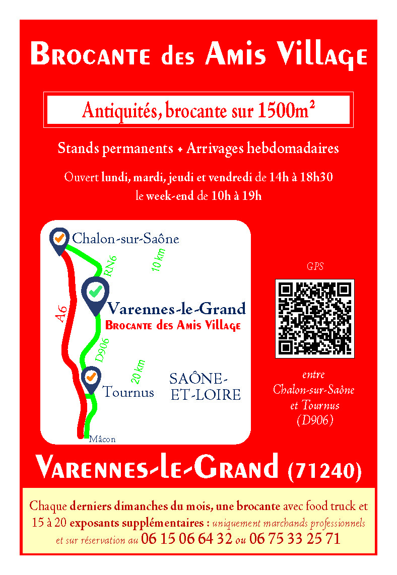 Brocante et Foodtruck à Varennes-le-Grand (71) Brocante et Foodtruck à Varennes-le-Grand (71) Chaque dernier dimanche du mois, animations et exposants supplémentaires (thématique & professionnels). 25 places en intérieur et 50 à l’extérieur Contact : Broc’ des Amis 06 75 33 25 71 Type d'exposants: Exposants professionnels Nombre d'exposants: 30-70 Tarif entrée: Gratuit + Ajouter à mon Agenda Google + iCal / Outlook export Étiquettes : 71, brocante, Foodtruck, Varennes-le-Grand Aucun événement trouvé !