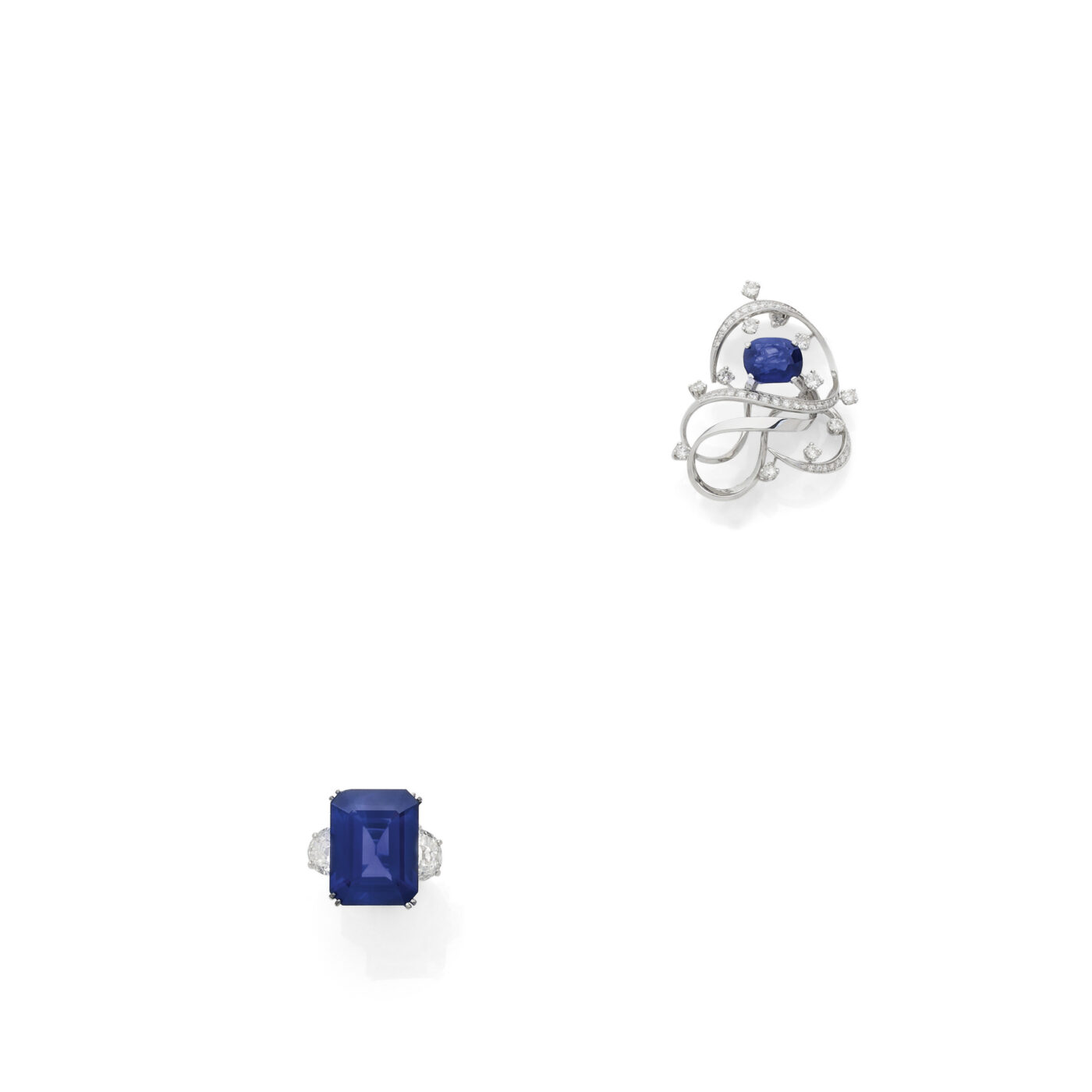 Ces deux saphirs ont la même provenance, au Cachemire, avec un bleu laiteux qui tire sur le violet, d’une rare intensité, qu’on appelle fleur de bleuet. Il est établi que ces pierres ont été trouvées au 19e siècle et sont extrêmement rares de par leur carat.